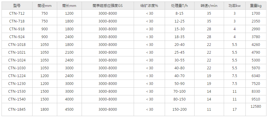 CTN型全逆流濕式磁選機其核心技術采用計算機模擬設計磁路,使磁選區的磁場分布更均勻,無空磁區,磁系大包角設計,滾筒表面磁場強度高可達8000gs。槽體和滾筒表面做特殊耐磨處理,耐磨有多種方式可選,使整機壽命大大延長。