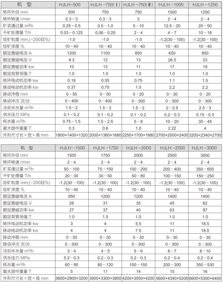 HJLH立環(huán)高梯度磁選機技術(shù)參數(shù):